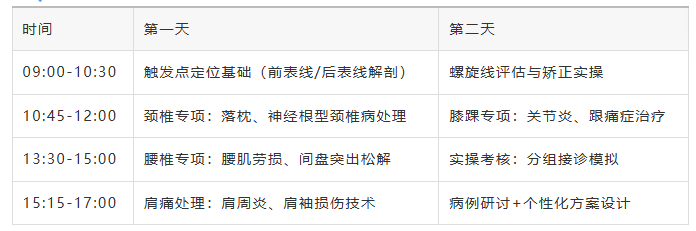 1、政策风口: 基层医生的转型机遇来了2025年国家卫健委最新数据显示,基层医疗机构疼痛患者就诊量同比激增47%,但具备疼痛专项诊疗能力的医生仅占19%。《进一步提升社区卫生服务能力实施方案》明确提出,到2026年实现"每万名居民配备2名疼痛诊疗骨干",政策红利正加速释放。抓住这次技术升级机会,就能抢占基层医疗市场的"黄金赛道"。 2、急诊案例: 3分钟解除剧痛的底层逻辑上周凌晨2点,某三甲医院急诊室接收了一位痛到冒冷汗的52岁患者——右侧肩痛持续3个月,夜间痛醒,手臂无法抬举,多家医院诊断"肩周炎"却越治越重。邵新学主任触诊发现其肩胛骨内侧存在3个黄豆大小的硬性结节,按压时疼痛瞬间放射至肘部。采用"定位+松解+五行针"组合技术,3分钟操作后,患者手臂可轻松举过头顶,疼痛VAS评分从8分降至2分。关键启示:85%的颈肩腰腿痛并非骨骼问题,而是肌肉中的"疼痛开关"——肌筋膜触发点在作祟。传统疗法只处理疼痛部位,而触发点技术能精准定位病灶,实现"一次治疗,长期缓解"。 3、三大核心技术: 破解疼痛的“黄金三角”前表线松解术:解决"低头族"的颈椎危机长期低头导致胸锁乳突肌、胸大肌形成触发点,引发头痛、胸闷。邵主任独创的"三指定位法",通过胸锁乳突肌止点按压+胸骨旁肌拉伸,配合五行针温通,可快速解除交感神经压迫。临床数据显示,该技术对颈椎病患者的即时缓解率达92%。后表线重建术:根治慢性腰痛的关键腰椎间盘突出患者中,73%存在竖脊肌、臀大肌触发点。课程将教授"脊柱三柱触诊法",通过L3横突定位+臀中肌弹拨,配合动态关节松动,重建腰椎生物力学平衡。某社区医院医生学员反馈,运用该技术后,腰痛患者复诊率下降68%。螺旋线矫正术:终结膝痛的底层方案膝关节疼痛常与髂胫束、股四头肌失衡相关。邵主任研发的"螺旋线张力测试",能精准识别阔筋膜张肌触发点,采用泡沫轴横向滚动+五行针围刺技术,多数患者1次治疗即可下蹲角度增加40°。 4、2天课程表:75%实操占比,学完就能用